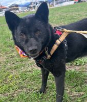 トレーニング中イーニー*岡山譲渡センター 真っ黒い毛色かと思いきや、実は白い毛色も持ち合わせている!つぶらな瞳の男の子です☆人...
