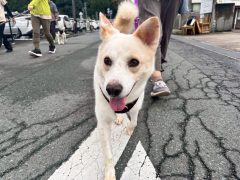 【お散歩】引っ張りなく人の傍を歩けます。