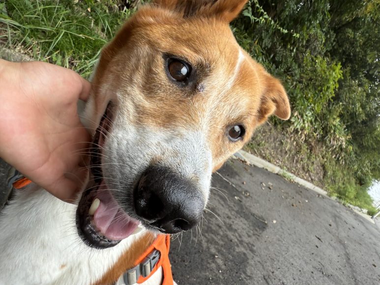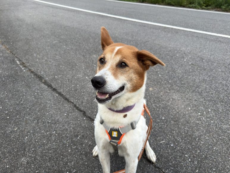 元気いっぱいでお散歩は出始めに引っ張りが強いものの、少し歩くと楽しいくらいに落ち着いてくれます。
