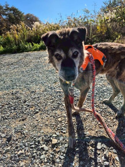 お散歩とわかると人に抱きついてきて顔を舐め回そうとします(笑)