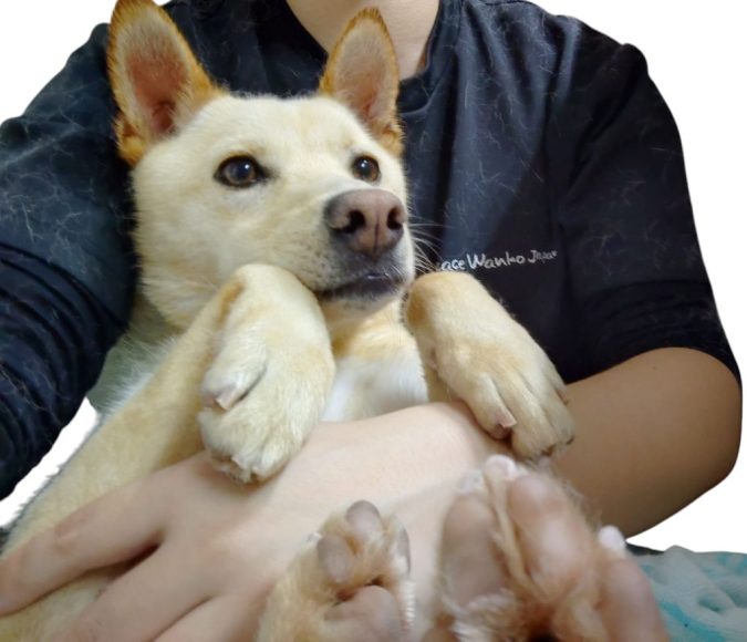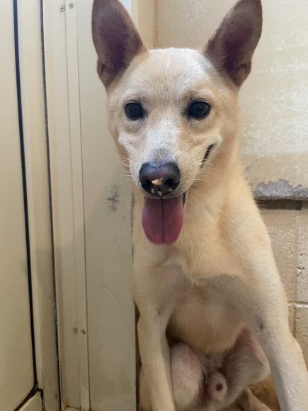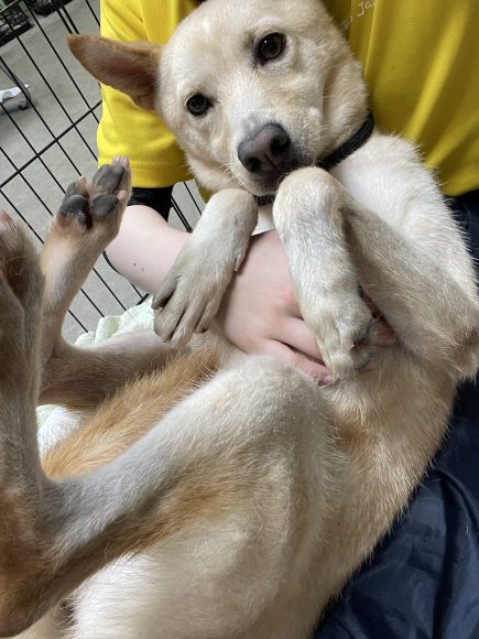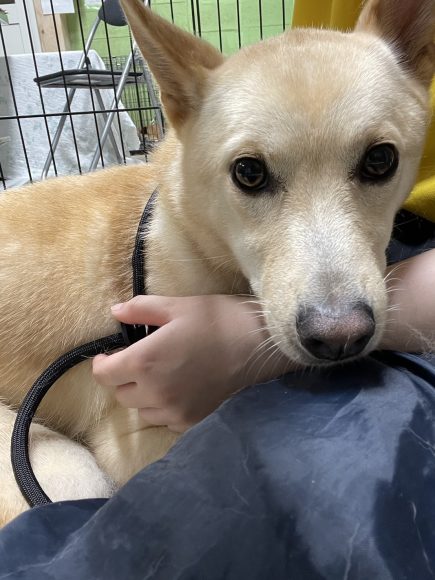 小柄でシュッとしたお顔にピンッと立ったお耳が特徴のクリーム色の男の子!