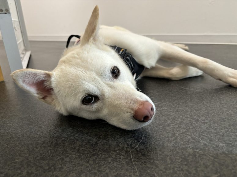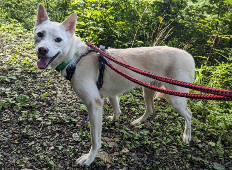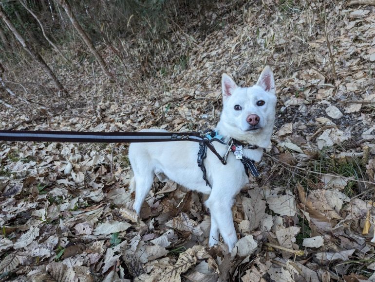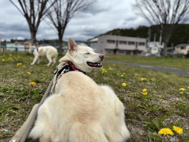 物音や車に少し敏感なところがありますが静かな場所では匂いをかぎながら上手に歩けます。