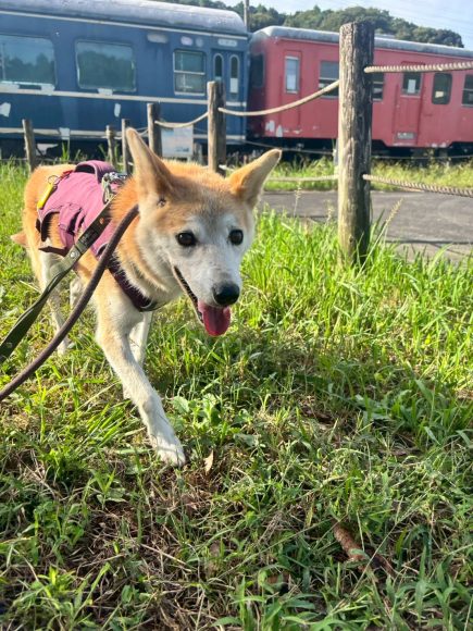 【お散歩】人の動きと車の音に敏感で少し挙動不審ですが、しっかり歩いてくれます。