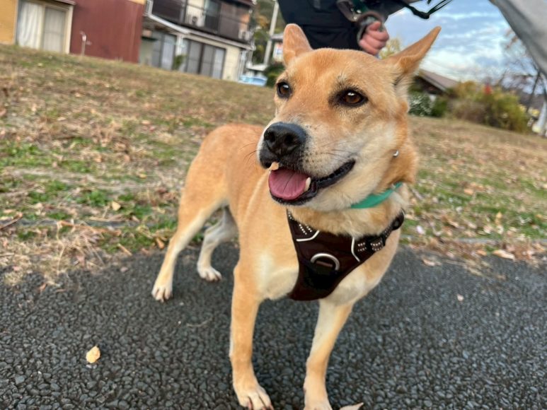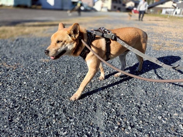 【散歩】落ち着いて歩けますが、怖いことがあるとリードを噛んでしまうことがあります。