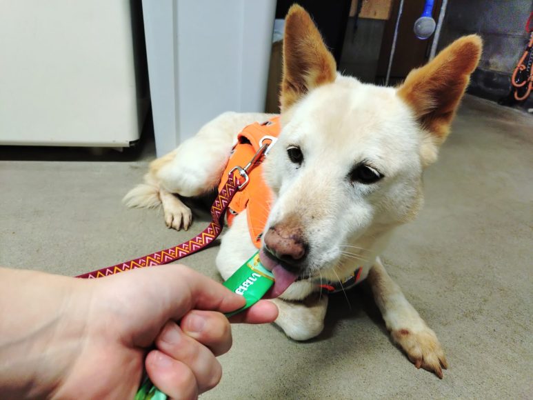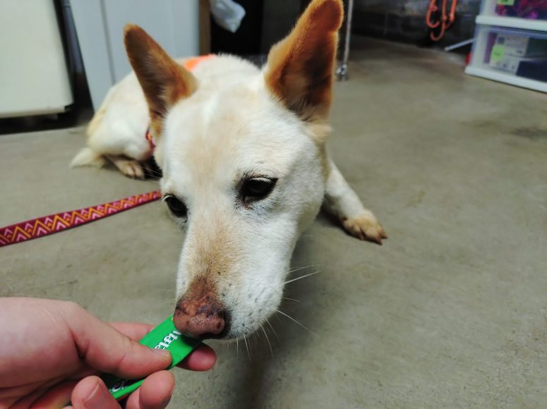 少し怖がりですが、おやつが大好きで誰からでも食べてくれます。
