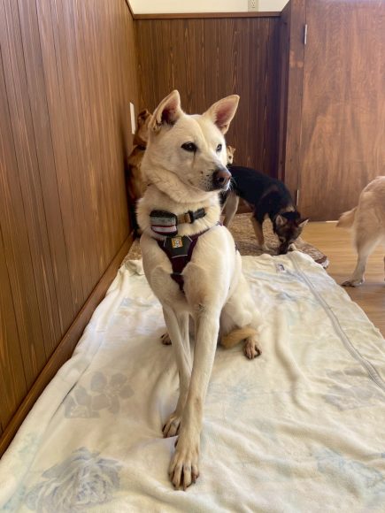 真っ白で小さい顔と少しムチッとした体型が可愛い女の子です。おやつ、ご飯が大好きで、慣れている場所であれば積極的に食べられます!お散歩も人のペースに合わせて、ゆっくり歩けます♪デイジーの性格のように、優しく可愛がってくださるご家族を募集中です!