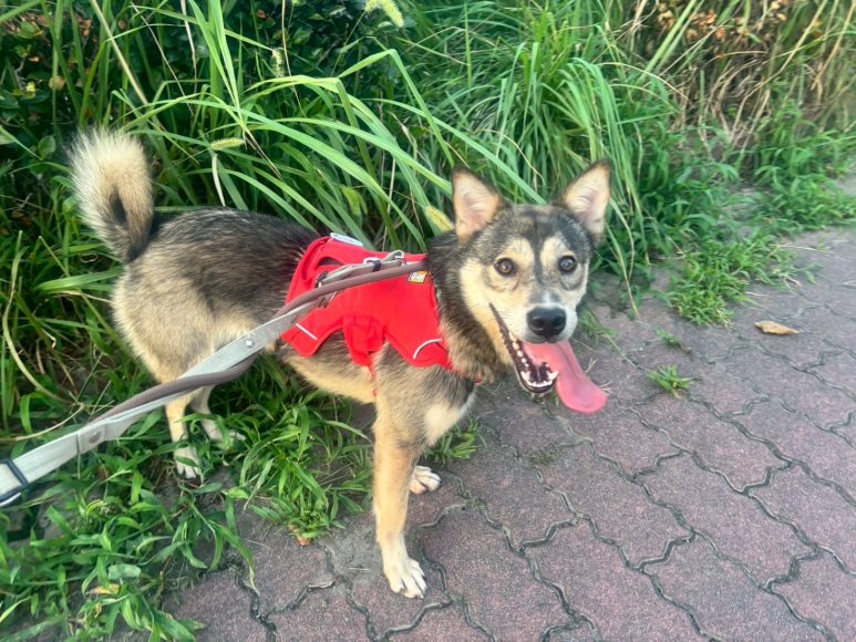 まだ緊張が見られますが、お散歩の際は楽しそうな姿を少しずつ見せてくれるようになってきました!