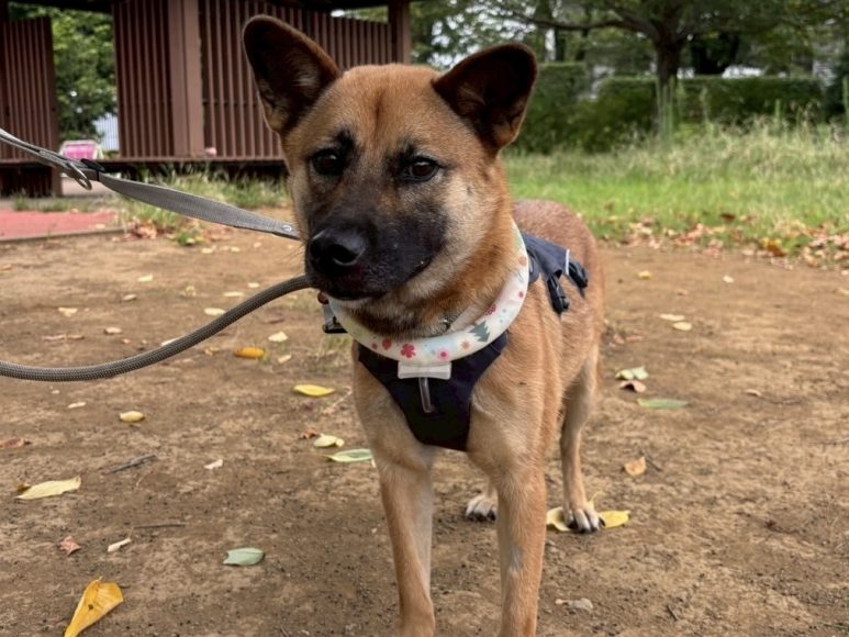 まだまだトレーニングを始めたばかりで、お散歩に行く前は緊張から震えたり、抱っこされると表情が固まってしまいますが、大人しく抱っこさせてくれたり、人のペースに合わせて近くを歩いてくれたりと、とってもお利口さんです!