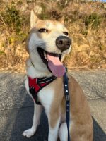 お散歩はまだ少し緊張してしまいますが、上手に人の隣を、ペースを合わせて歩く事ができます!