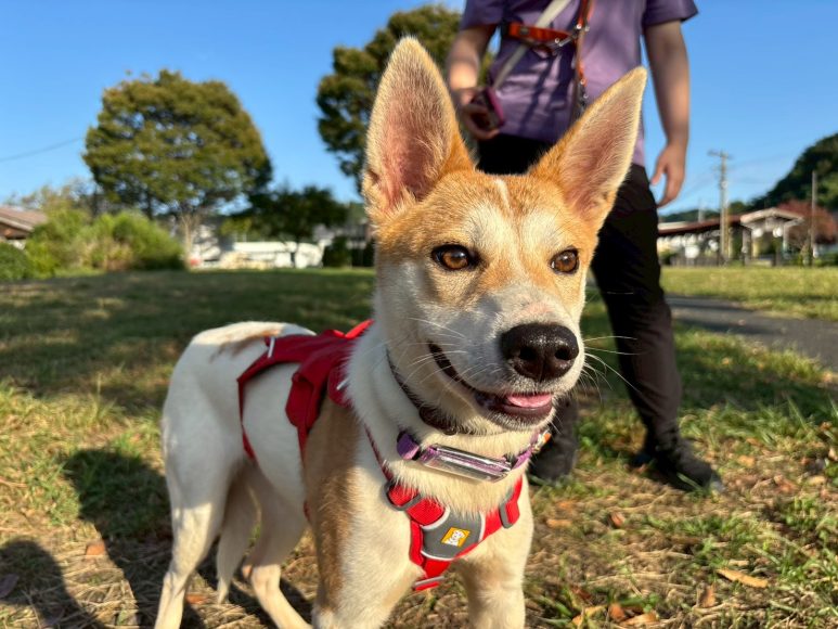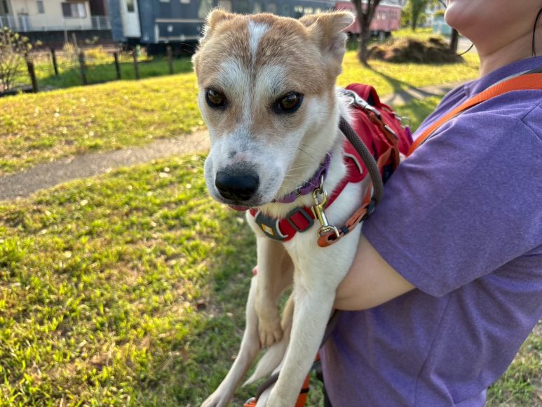 お散歩はまだ浜松に移動してきて間もないため車やバイクの多さにびっくりし伏せてしまうことがあるので、抱っこして移動してあげる時もあります。アビーのペースで練習中です!