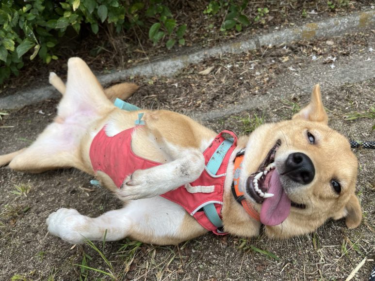 まだお散歩練習中ですが、すでにお散歩は大好きしっぽを振ってるんるんです🎶