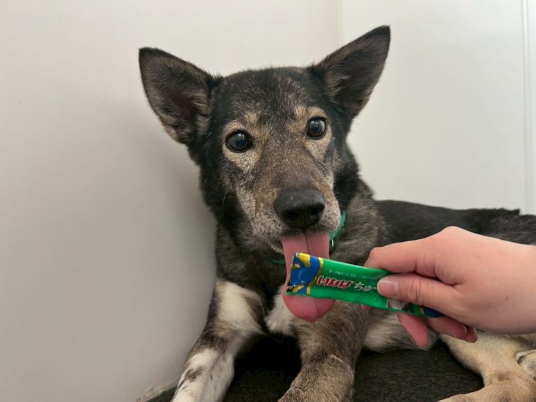 まだまだ緊張しいですが、食べることは大好きで人の手からもおやつを食べれます♪