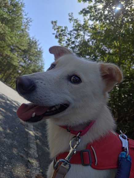 お散歩も練習中ですが、とても上手に歩いてくれてクン活が好きなようです。