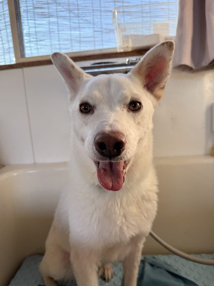 真っ白い毛と綺麗な瞳がチャームポイントっ✨️