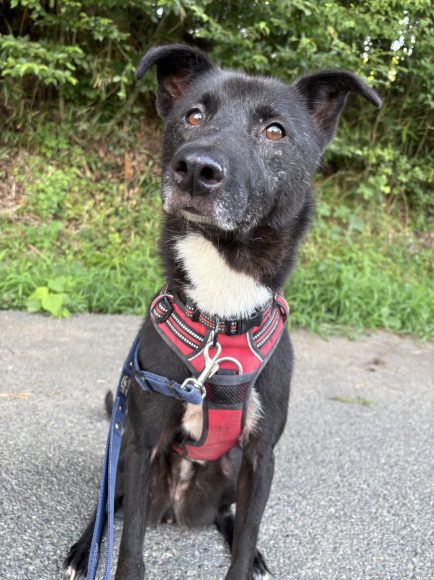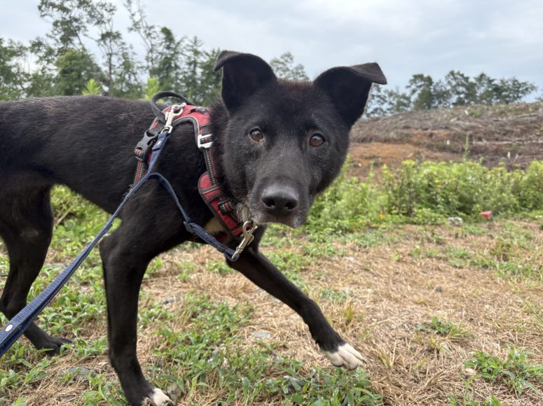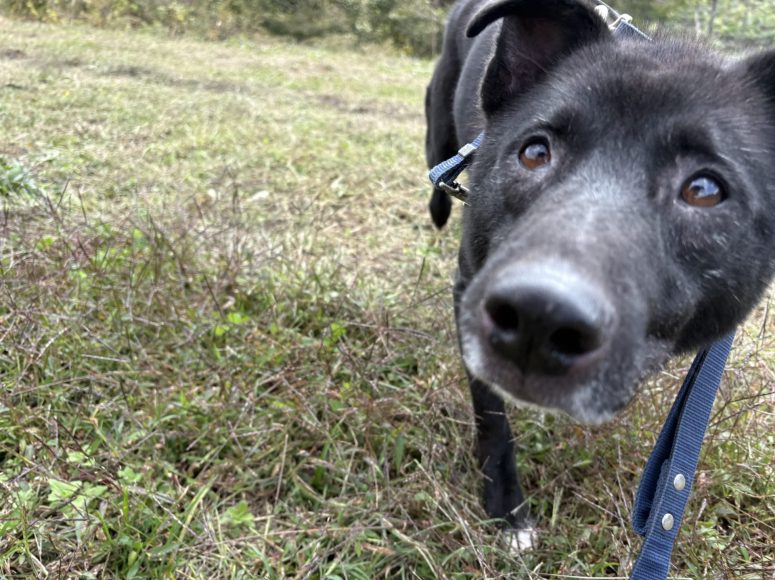 真っ黒なカッコイイ体で、とにかく食べることが大好きなアオメイちゃんです!おやつを見ると一目散に食べに来て、お得意なお座りをしてくれます!
