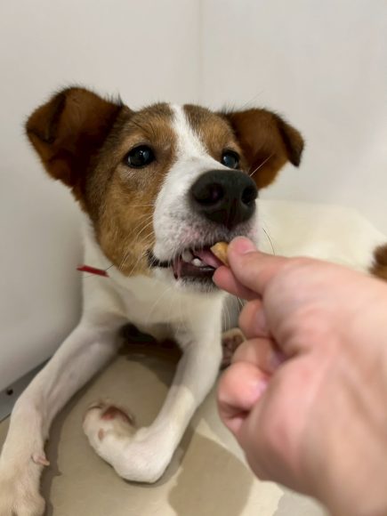 手からオヤツを食べることもでき、撫でると尻尾を振ってくれます♪