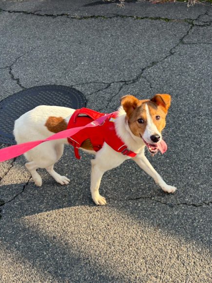 初めての環境では少し緊張してしまいますが、お散歩は上手に歩けます!