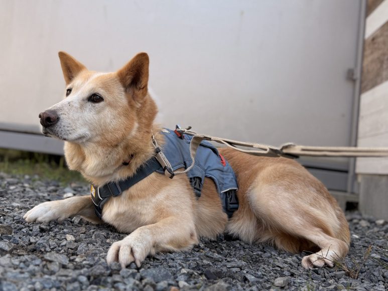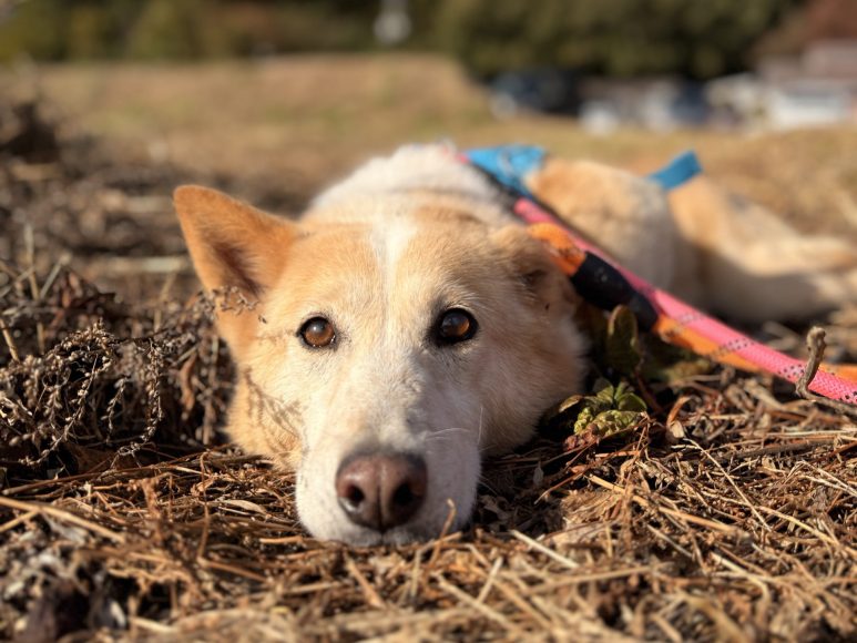 【お散歩】浜松に来たばかりなのでお外の環境に少し不安そうですが、人の横を落ち着いて歩いてくれます。