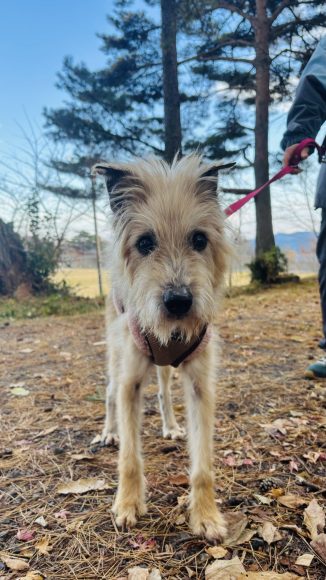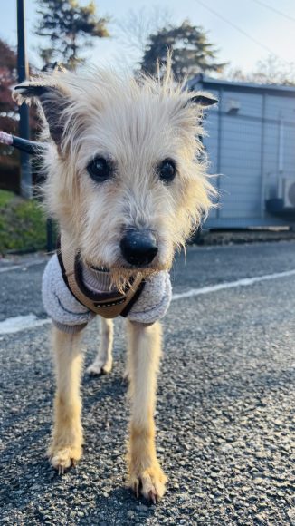 テリア風な見た目のくりくりなおめめがとっても可愛いマイペースなおばあちゃんワンコです!人に自分から寄ってきて興味津々にジッと見つめてきます!体を丸めて、うとうと寝ている姿にはとても癒されます!