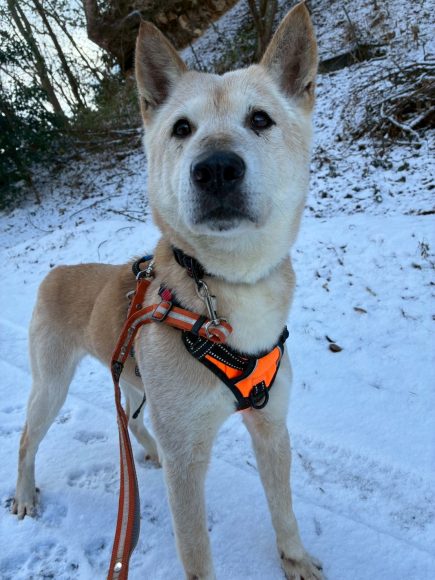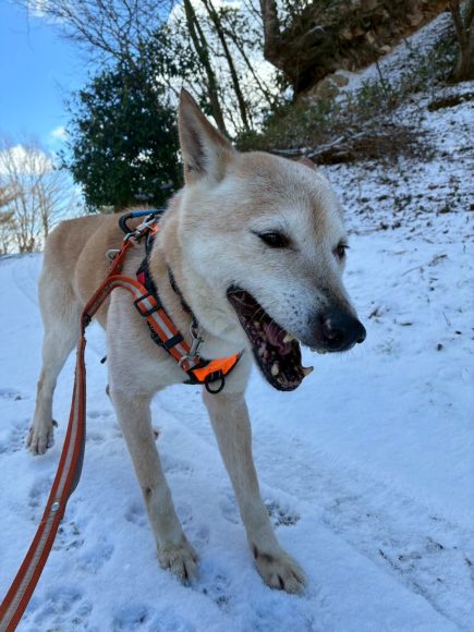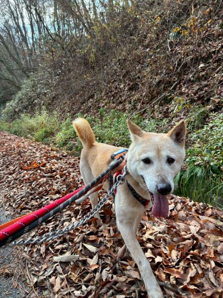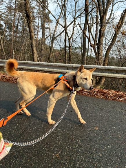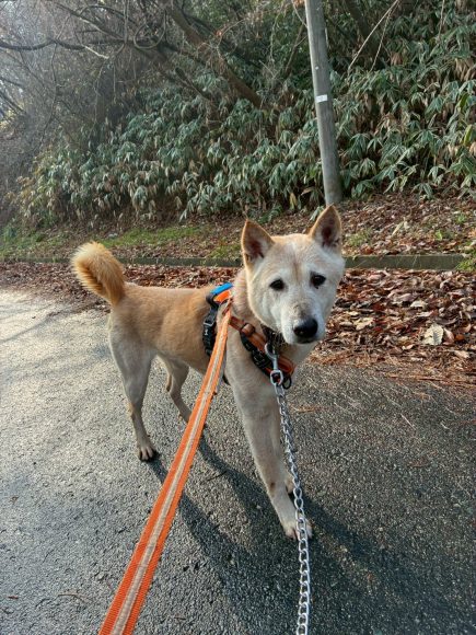 大きい体なので引っ張りが強いのではと心配していましたが人の斜め後ろをゆっくり歩いてくれます。