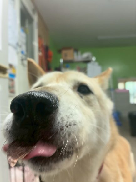 普段はお部屋の中で寝ていますが、トレーニングする前から匂いを嗅いでくれておやつを持って入ると1番に寄ってきてくれます!