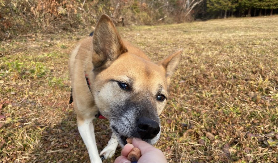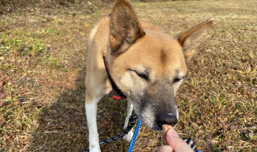少し人見知りがありますが、お散歩中でもそーっとおやつを食べてくれるようになりました✨