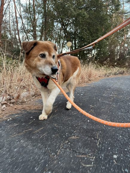 お散歩がとっても上手でしっぽを小さく振って、人のペースに合わせて歩いてくれます!