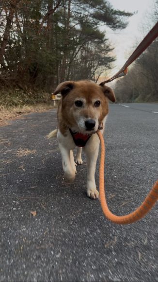 引っ張りなく、人のペースに合わせて歩いてくれます。しっぽも小さく振って楽しそうに歩きます。