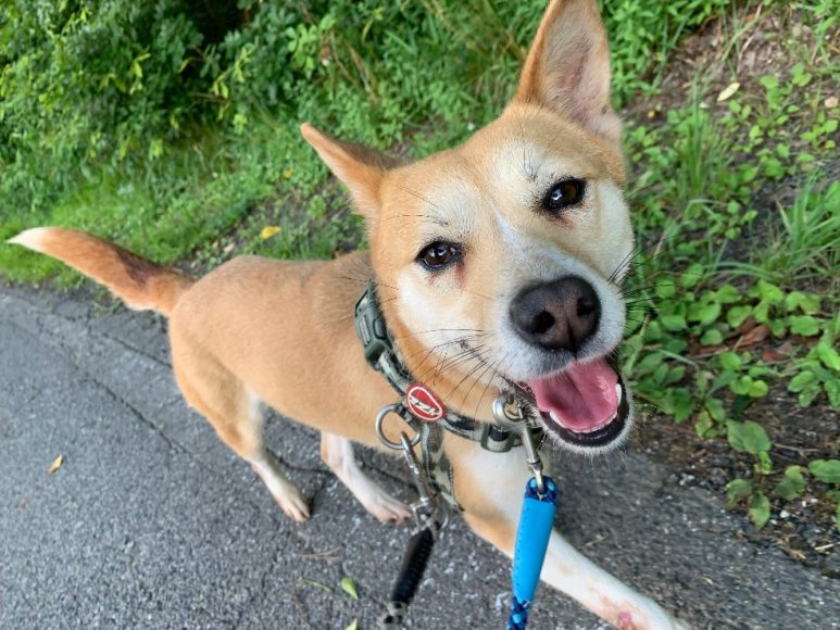 ペースを合わせて隣を上手に歩いてくれます!お散歩中のニコニコ笑顔がたまりません!