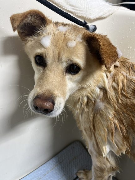 【シャンプー】水圧、風圧が強すぎなければ基本的には大人しいです。ブローもバスタブの中で落ち着いて固まってくれます。