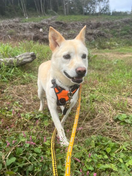 人にペースを合わせて上手に歩いてくれます。しっぽをふりふりしながら楽しそうな姿も見せてくれます。