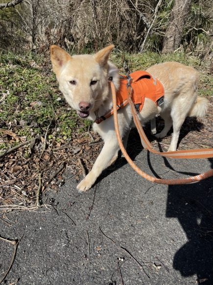 【散歩】まだ静かな環境でしか経験はありませんが、上手に人の横を歩いてくれます。