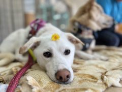 トレーニング中真っ白でもふもふの毛が特徴の女の子です。まだまだ怖がりで、様々なことを練習中です!...