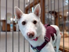 トレーニング中🍀ファミリーサポート対象:フィラリア症綺麗な真っ白い毛の女の子です🎀まだまだ人に対し...